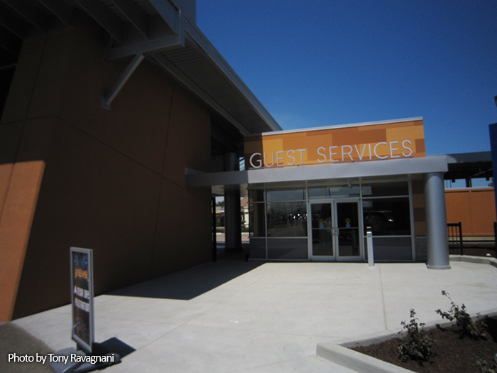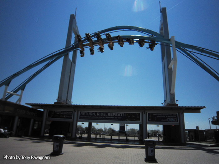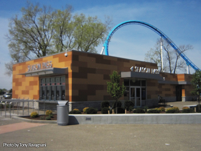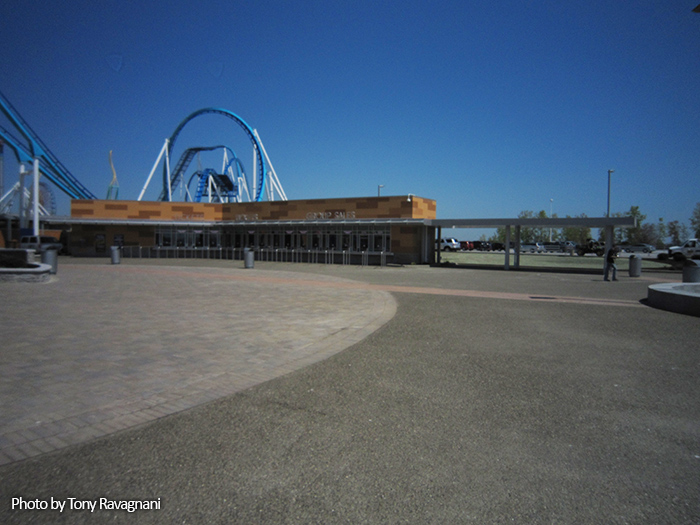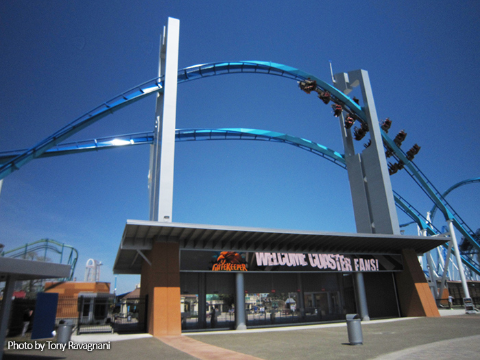 The new 2013 Gatekeeper Roller Coaster flies over your head and through the Front Entry Canopy as you enter the park, a first of its kind.